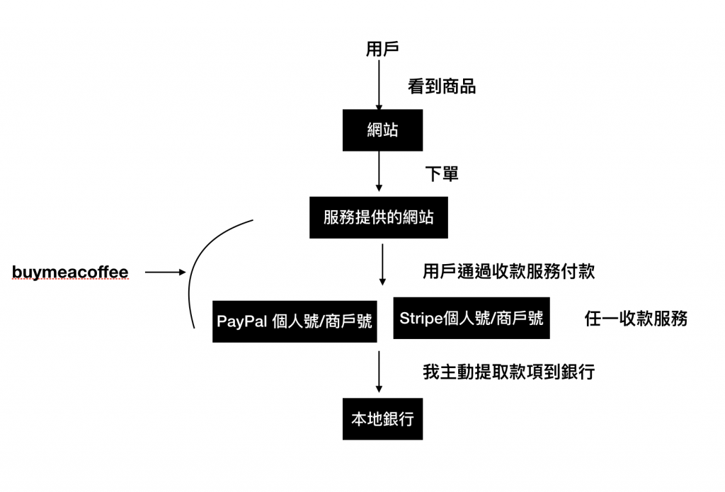 這兩個服務平台很相似,buymeacoffee 或 ko-fi 都支持一次性(不需登入)和月支付(不確定我沒看清楚),對收款方來說,paypal,stripe的個人號和商戶號都支持